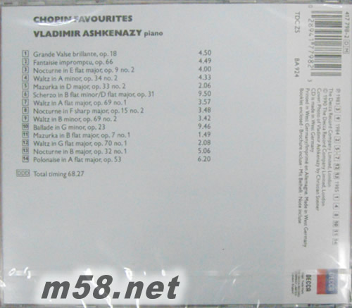 蕭邦:鋼琴名曲集 (喝采名片精選)Chopin:Chopin Favorites(m58.net) 蕭邦的鋼琴作品受歡迎的程度,早已証實(shí)了它們是全世界最風(fēng)行的古典樂曲之一,不但旋律優(yōu)美動人,也把蕭邦獨(dú)具的唯美浪漫氣質(zhì)顯露無遺。這里所收錄的「華麗大圓舞曲」、「幻想即興曲」等在蕭邦短暫生命中都佔(zhàn)有十分重要的地位,也是最要求表現(xiàn)手法,最需用心來演奏的作品,值得您用心去聆聽。