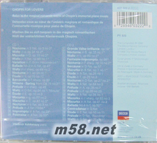 Chopin for lovers給情人的蕭邦鋼琴名曲(藍色封面)專輯背面圖片