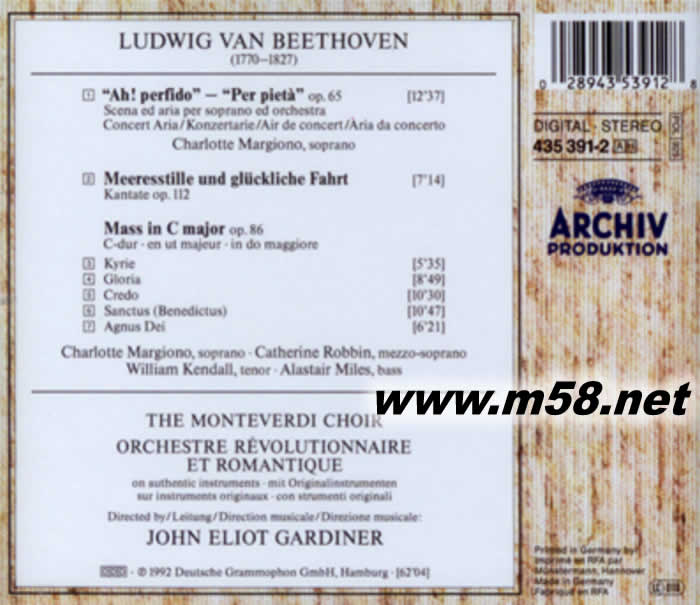 John Eliot Gardiner指揮 加迪納 - 貝多芬:C大調(diào)彌撒 John Eliot Gardiner - Beethoven:Mass In C專輯背面圖片