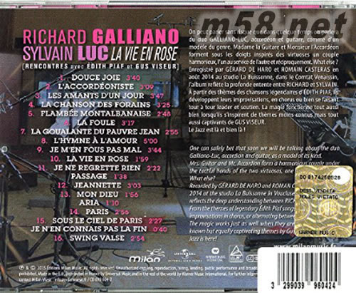LA VIE EN ROSE (HOMMAGE TO EDITH PIAF)玫瑰人生: 理查蓋利安諾 (手風(fēng)琴), 席爾維.路 (結(jié)他)專輯背面圖片