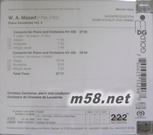 莫扎特鋼琴協奏曲第四輯SACD專輯背面圖片