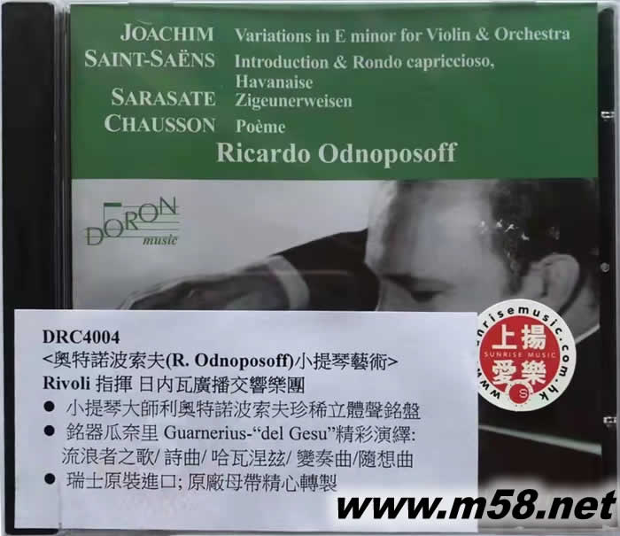 Legendary Artist - Ricardo Odnoposoff 奧特諾波索夫小提琴藝術(shù)(m58.net) R. Odnoposoff 奧特諾波索夫, 小提琴/ Rivoli 指揮 日內(nèi)瓦廣播交響樂團 小提琴大師利奧特諾波索夫珍稀立體聲銘盤 銘器瓜奈里Guarnerius-“del Gesu”精彩演繹: 流浪者之歌/ 詩曲/ 哈瓦涅玆/ 變奏曲/隨想曲 瑞士原裝進口; 原廠母帶精心轉(zhuǎn)製