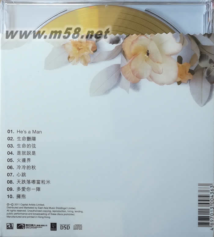 01. He's a Man 02. 生命艷陽 03. 生命的弦 04. 是就說是 05. 火邊界 06. 冷冷的秋 07. 心跳 08. 天跌落嚟當粒米 09. 多愛你一陣 10. 擁抱