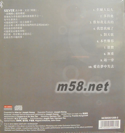 但愿(m58.net) SILVER 從事和音多年,這張是她 首張 CD。歌曲方面,除一些新歌外,她翻唱了 多得她、 但愿人長久、我想我瘋了- 林憶蓮「因你瘋了」的原版! 還有 對天歌 - 杜琪峰的電影「黑社會」主題曲 及 假如我是真的 主題曲 電影「假如我是真的」獲得第18屆金馬獎最佳劇情片獎及最佳改編劇本獎,譚詠麟亦憑此片得最佳男主角獎。 主題曲原唱者為鄧麗君。