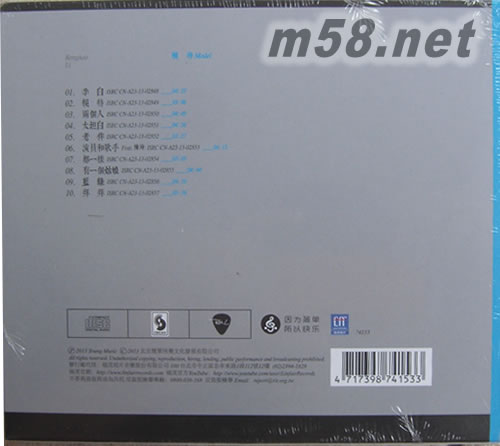 1. 李白 詞曲:李榮浩 2. 模特 詞:周耀輝 曲:李榮浩 3. 兩個(gè)人 詞曲:李榮浩 4. 太坦白 詞曲:李榮浩 5. 老伴 詞:周耀輝 曲:李榮浩 6. 演員和歌手 詞曲:李榮浩 7. 都一樣 詞曲:李榮浩 8. 有一個(gè)姑娘 詞:瓊瑤 曲:李正帆 9. 藍(lán)綠 詞曲:李榮浩 10. 拜拜 詞:李三木 曲:李榮浩