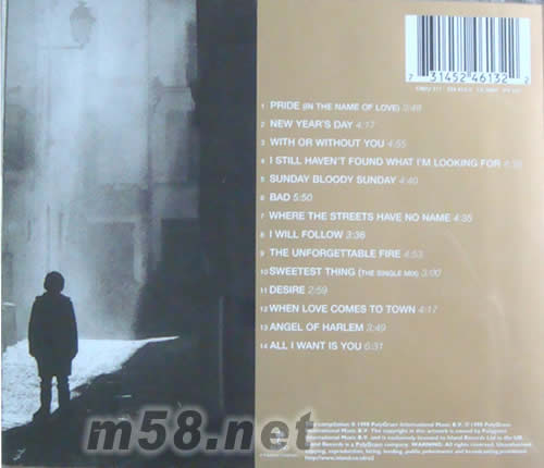 1.Pride 2.New Year's Day 3.With Or Without You 4.I Still Haven't Found What I'm Looking For 5.Sunday Bloody Sunday 6.Bad 7.Where The Streets Have No Name 8.I Will Follow 9.The Unforgettable Fire 10.Sweetest Thing 11.Desire 12.When Love Comes To Town 13.Angel Of Harlem 14.All I Want Is You