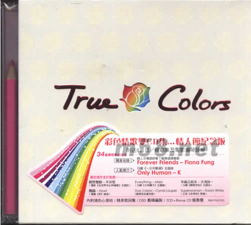 TRUE COLORS(情人節紀念版)(m58.net) 彩色情歌雙CD集...情人節紀念版 附送8首日/韓劇集及電影鋼琴音樂 34首原唱歌曲包括 獨家收錄 線上及電話鈴聲下載熱選項樓盤歌 ROEVER FRIENDS-FIONA FUNG