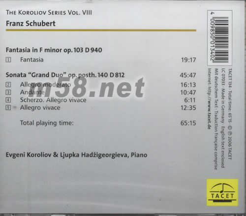 FANTASIA IN F MINOR OP.103 D 940 1.FANTASIA SONATA GRAND DUO OP.POSTH,140 D 812 2.ALLEGRO MODERATO 3.ANDANTE 4.SCHERZO.ALLEGRO VIVACE 5.ALLEGRO VIVACE