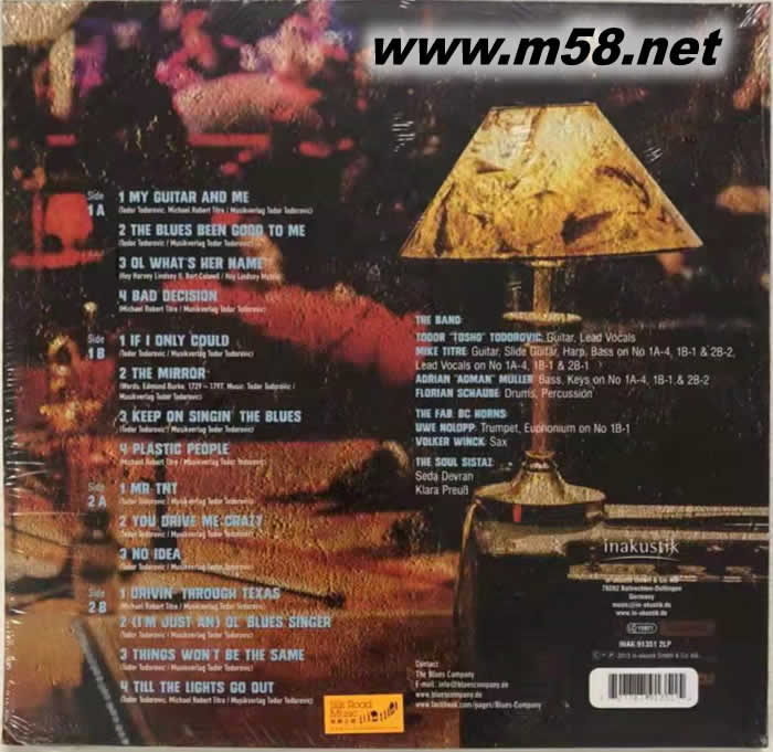 藍(lán)調(diào)公司BLUES COMPANY AIN T NOTHING BUT 雙黑膠(m58.net) Toscho Todorovic (結(jié)他及主唱) Mike Titre (結(jié)他及豎琴) Michael Müller (低音結(jié)他) Arnold Ogrodnik (低音結(jié)他及管風(fēng)琴) Christian Rannenberg (鋼琴) Uwe Nolopp (小號) Franz „Scholli“ Knollmeyer (鼓) Florian Schaube (鼓) Volker Winck (中音薩克斯管 藍(lán)調(diào)公司樂隊曾獲得德國年度最佳節(jié)奏怨曲樂隊榮譽(yù),是公認(rèn)的藍(lán)調(diào)班霸,此專輯是“藍(lán)調(diào)公司”為2015年7月“莫斯塔爾國際藍(lán)調(diào)音樂節(jié)”的演出先為樂迷特別精心炮制的前奏演出,180G雙黑膠完全德國制造。