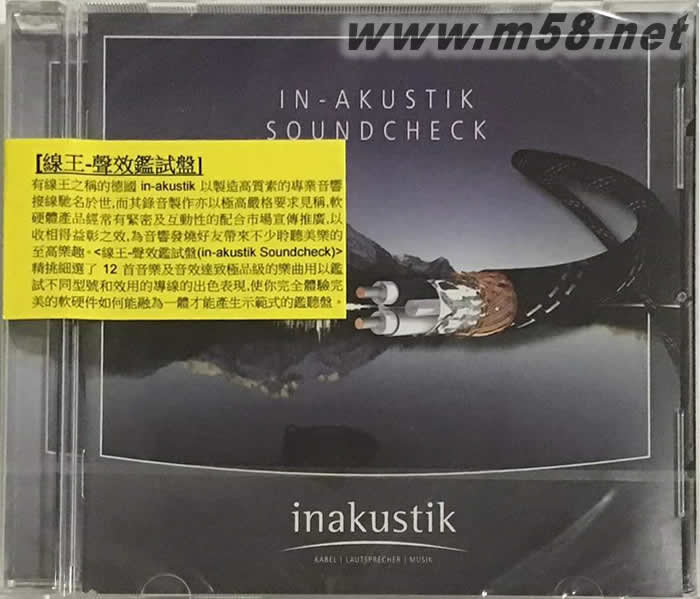 in-akustik Soundcheck 線王 聲效鑒試盤(m58.net) 有線王之稱的德國in-akustik以製造高質(zhì)素的專業(yè)音響接線馳名於世,而其錄音製作亦以極高嚴格要求見稱,軟硬體產(chǎn)品經(jīng)常有緊密及互動性的配合市場宣傳推廣,以收相得益彰之效,為音響發(fā)燒好友帶來不少聆聽美樂的至高樂趣。<線王-聲效鑑試盤(in-akustik Soundcheck)>精挑細選了12首音樂及音效達致極品級的樂曲用以鑑試不同型號和效用的導(dǎo)線的出色表現(xiàn),使你完全體驗完美的軟硬件如何能融為一體才能產(chǎn)生示范式的鑑聽盤。測試「悸動性」低音[Joanne Shaw Taylor: Heavy Heart (袓安.蕭.泰萊:沉重的心)]是必然之選; [Blues Company: Invitation to The Blues (藍調(diào)公司:試邀聽藍調(diào))]則將「漸次式」的空間感表露無遺;精密高解像演繹則不離[Friedemann: Sourdos (費萊德曼:梳亞杜斯)]; [Monty Alexander: Send for Me (蒙蒂.亞歷山大:傳送給我)]則充份展示寬廣的動態(tài)范圍;動感豐盈,柔韌力足的人聲是[Friend’ N Fellow: My Baby Just Cares for Me (非凡:我寶貝著緊我)]的示范之作;要測試音場的平衡則必屬於[Schenker Barden Acoustics Project: Dance Lady Gipsy (申克爾與巴登 [聲響項目]:吉卜賽淑女起舞)]; [Keri Noble: Last Warning (凱妮.諾保:最后警告)]的音效設(shè)計直是細致完美的典范;晶瑩剔透的人聲與結(jié)他的演繹[Sara K.: Don’t I Know You from Somewhere? (莎拉K:我是否知道你從那里來?)]是不二之選; [Tom Freund: Collapsible Plans (Sugar) (湯.弗恩德:可瓦解的計劃‘糖’)]極富融合的空間感; 獨一無二的精密音效設(shè)計是[Flying Pickets: Drive (飛天糾察隊:推動)]將清唱優(yōu)美的人聲和和聲表露無遺;[Esperanza Splading: Ponta De Areia (艾絲柏蘭莎.史庇汀:團結(jié)的阿里雅)]的低音部份充滿映像感及[Cameron Carpenter: Toccata und Fuge in D-Moll, BWV565/Bach (康麥隆.卡彭特:巴哈/D大調(diào)托卡塔及賦格曲,BWV565)]則盡顯深層的頻率與動感。
