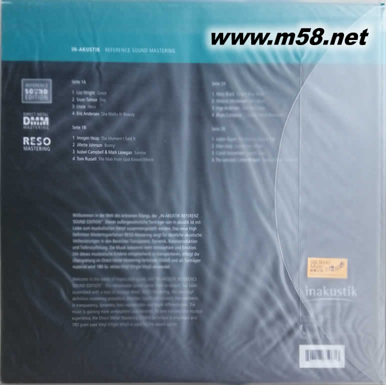 宏亮的嗓音 第3集 GREAT VOICES VOL.3 黑膠 (INAKUSTIK宏亮系列)(m58.net) 1. 這專輯的母盤是採用音源對比製作(RESO Mastering – Reference Sound Mastering),是現(xiàn)今最高解像度技術(shù)使原母盤內(nèi)的音源效果得以改良和提升,清澈度更高,動態(tài)范圍更寬,低頻更重更深,是音響發(fā)燒友夢寐以求的音效,這種新制式配合以金屬直刻母盤刻製的180克,33 1/3轉(zhuǎn),處女黑膠唱片為載體,效果更覺可人,別具韻味。 2. 因受到追求自然真實(shí)聲音美感為目標(biāo)的樂迷擊節(jié)讚賞,音源對比母盤製作系列之「宏亮的嗓音」將出版的第三輯(Great Voices, Vol. 3),你可繼續(xù)鑑賞到每首精挑歌曲愉悅清脆的人聲和晶瑩剔透的樂器聲,豐滿淳厚的音色、專業(yè)顯赫的音效和深濶的音場構(gòu)結(jié)成一張極具品味的示范名盤,讓你進(jìn)入聆聽更高境界。 3. 專輯中有十二首女聲和四首男聲歌曲,每位歌手皆擁有一副動人的聲線,每首歌曲皆是他們各自的首本名曲,展現(xiàn)前所未有的聲音美感,亦是令樂迷魂牽夢縈的人聲瑰寶。 4. 特別推薦不朽經(jīng)典" 著名的藍(lán)雨衣(Famous Blue Raincoat)"由原唱者,殿堂級男歌手李歐納‧柯恩(Leonard Cohen)親自演繹的現(xiàn)場版本,他將原曲的神情韻味以難以超越,每可替代的姿態(tài)全面呈現(xiàn)。