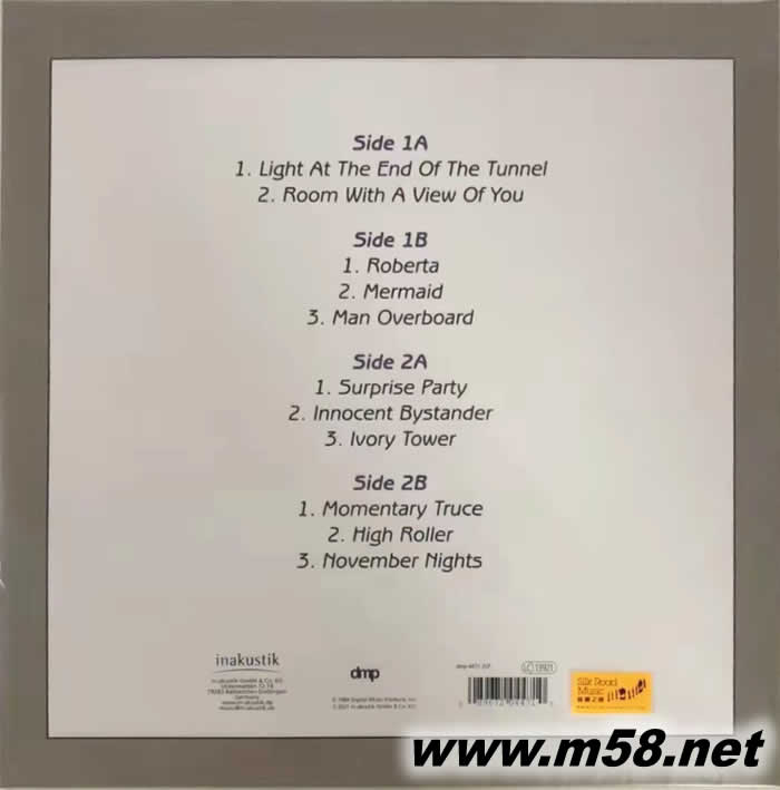 隧道Tunnel 爵士四重奏(貝斯、鼓、鋼琴、木管)黑膠(m58.net) Jimmy Johnson (nicknamed "Flim"), 5-string bass 低音貝斯 Bill Berg (drum & percussion鼓與打擊樂(lè)) Billy Barber(piano, keyboard &synthesize鋼琴、鍵盤與合成) Dick Oatts (woodwind木管樂(lè)) 1. 由五弦低音結(jié)他手,綽號(hào)"弗連"的吉米‧約翰遜(Jimmy Johnson, nicknamed "Flim")的別名和鼓手比爾‧伯格(Bill Berg)及琴鍵手比利‧巴伯Billy Barber)姓氏的頭一個(gè)字母"B"所組成的「弗連與BB樂(lè)隊(duì)(Flim & The BB's)」與著名發(fā)燒品牌「DMP」(Digital Music Products, Inc.)於1983年錄製的第一張專輯《三輪車(Tricycle)》獲得空前成功,成為爵士樂(lè)迷和「發(fā)燒友」的鑑賞和鑑聽必備之選。隨后樂(lè)隊(duì)迅即製作第二張專輯《隧道(Tunnel)》,表現(xiàn)與成績(jī)與《三輪車》不遑多讓,更榮獲《「光碟評(píng)論音樂(lè)雜誌」- 1984年度爵士樂(lè)最佳鐳射光碟專輯」奬(「CD Review」- Jazz CD of the Year)》,成績(jī)蜚然。 2. 樂(lè)隊(duì)各成員擁有高超的演奏技術(shù)毋庸置疑,這次繼續(xù)與著名木管樂(lè)樂(lè)手迪克‧奧特斯(Dick Oatts)合作(奧特斯隨后亦成為樂(lè)隊(duì)的固定成員),他盡顯橫溢的音樂(lè)才華,分別以中音薩克斯管、長(zhǎng)笛、電鋼琴、單簧管、高音薩克斯管、短笛及次中音薩克斯管合力吹奏專輯內(nèi)每一首歌曲,他杰出吹奏技巧除了凸顯每一吹管樂(lè)器的特色外,更能與樂(lè)隊(duì)如魚得水,天衣無(wú)縫般地融合。 3. 專輯內(nèi)的歌曲被視為融合爵士樂(lè)(fusion jazz)標(biāo)誌性的作品,這樂(lè)種所應(yīng)有的元素包括內(nèi)藴的動(dòng)力,有令人感覺游閒休悠,開懷愉悅的旋律,平和順滑的節(jié)奏和鬆弛愜意的氣氛在樂(lè)曲中可全面地體驗(yàn)得到,加上採(cǎi)用當(dāng)時(shí)最先進(jìn)的數(shù)碼錄音器材和技術(shù)製作,無(wú)論是音樂(lè)性的表達(dá),錄音效果的表現(xiàn)皆是上乘之作,備受各界擊節(jié)讚賞。 4. 專輯內(nèi)的樂(lè)曲仍然充滿為人津津樂(lè)道和讃嘆不已的電子合成器配合上各種樂(lè)器的演奏,起伏有致,動(dòng)態(tài)豐盈,音像飽滿清晰,音質(zhì)厚實(shí),線條分明,將美樂(lè)以驚人的真實(shí)度呈現(xiàn)。現(xiàn)將原裝母盤採(cǎi)用最新技術(shù)加以改良和調(diào)整,並以UHQCD為載體,塑造出更理想、更純凈的音色和音效。示范級(jí)的演奏,典藏級(jí)的錄音,盡展從容優(yōu)雅的融合爵士樂(lè)的魅力。