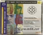 Six Brandenburg Concertos 巴哈:布蘭登堡協奏曲全集(SACD)(m58.net) 這張由斯圖加特室內管絃樂團所演出的巴哈六首「布蘭登堡協奏曲」,透過Tacet獨特出眾的DSD MIXING多聲道混音技術處理,除了音質絕佳之外,定位感、臨場感更是令人印象深刻,整個樂團演出效果,幾乎可說專為聆聽者一人設計呈現。 在第一號當中透徹的音場表現與管絃樂團的精彩演出將聆聽者緊密地包圍住。接下來的第二號,聆聽者再次被小提琴、長笛、雙簧管、小喇叭等樂器所包圍,舒適的感覺無法言喻。而第三號中,Tacet清晰透明的聲音層次處理,讓人不花力氣地可以將小提琴、中提琴、大提琴等樂器點數出來。第四、五號中那宛如觸手可及的定位效果,也讓人可以清楚的分辨出像是長笛、小提琴、管絃樂團等所有樂器的正確位置。在第六號中所表現出的那份活生感,讓人真會以為將一整個管絃樂團請到家中來表演一般的真實。這張雙層的SACD無論是在樂器表現上,還是樂曲演繹上都超越了普通CD的效果,呈現出TACET錄音哲學中前所未有的流暢細致。高水準的錄音與製作除了早已讓[CD層]音效直達示范級天碟之外,[SACD層]音色更是超乎所有行家想像。無論是「定位感」、「空間感」、「層次感」以及「透明度」都讓人宛如置身現場一般!全碟無論是在選曲、卡司、演出、甚至於錄音都稱得上是高水準的完美表現。透過Tacet靚絕通透的細膩錄音來聆聽巴哈作品,您會發覺醇美的音色、精準的定位,原來並非遙不可及! 音效從頭至尾靚絕通透、立體飽滿,『正』到令人發暈,誘人出眾的美妙音色,能不陶醉者幾稀,不愧是當今市面上眾多 SACD 中真正的「超級CD」(Super Audio CD)! 身為發燒友的您,豈能錯過?