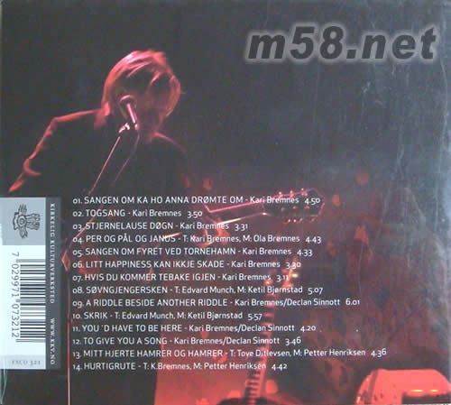 玫瑰仙子演唱會(huì)CD(m58.net) 玫瑰仙子演唱會(huì) 發(fā)燒天后 Kari bremnes 演唱會(huì)專輯,在濃烈的深情旋律下獻(xiàn)唱,男聲的和唱把情感提升至極點(diǎn),悅耳的歌聲打動(dòng)一切樂迷,靚絕人聲,低頻真撲而出,靚聲至極.