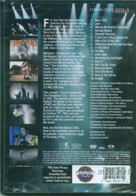 LIVE IN BUCHAREST THE DANGEROUS TOUR羅馬尼亞布加勒斯特 DVD 美版專輯背面圖片