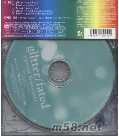 glitter / fated (CD+DVD)(海外版)(m58.net) 濱崎步 GLITTER/FATED CD [GLITTER]ZESPRI奇異果廣告歌MUSIC。JP廣告歌 [FATED]電影[怪談]主題歌 [SCRET]電影[傷城]日本版主題歌 DVD特別收錄 香港拍攝的音樂電影 “距愛”-DISTANCE LOVE- 附歌詞中文翻譯