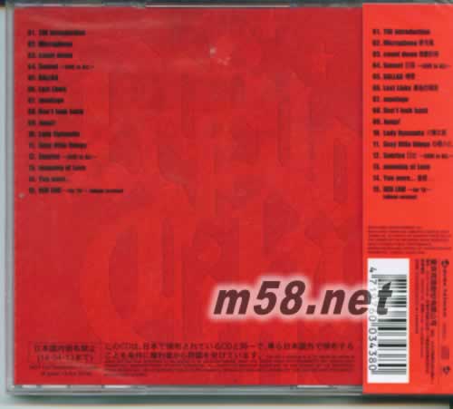 01 THE introduction 02 Microphone 03 count down 04 Sunset ~LOVE is ALL~ 05 BALLAD 06 Last Links 07 montage 08 Don't look back 09 Jump! 10 Lady Dynamite 11 Sexy little things 12 Sunrise ~LOVE is ALL~ 13 meaning of Love 14 You were... 15 RED LINE ~for TA~ [album version]
