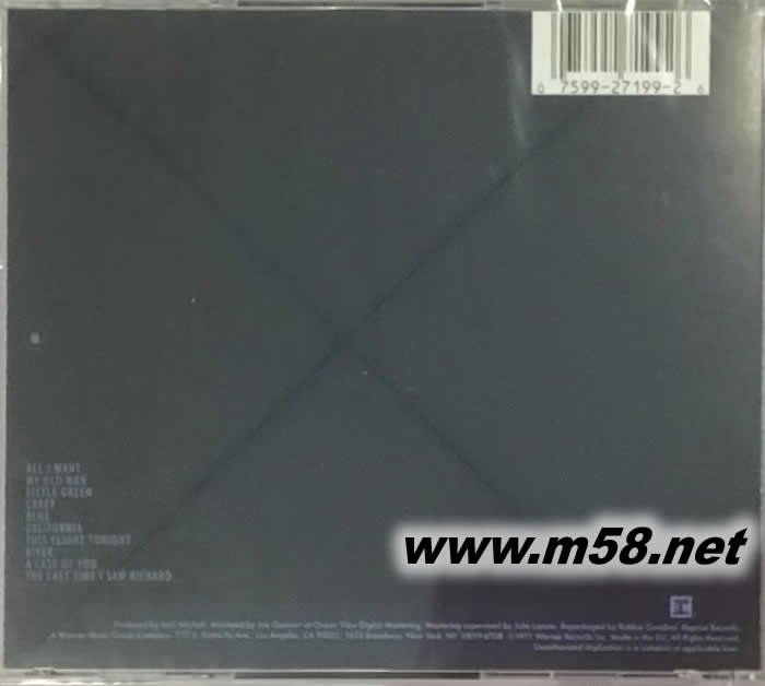 Joni Mitchell(原名:Roberta Joan Anderson,1943年11月7日-),加拿大有著重要影響力的傳奇音樂家,畫家,詩人,視覺藝術家和社會觀察者。 Mitchell在1960年代末有了名氣,并被認為是民謠搖滾歷史中重要的一部分。整個1970年代,她都致力于探索和合并流行樂與爵士樂。Mitchell把音樂當作個人精神歷程的敘述和探索,并通過音樂發表政治、環保、女權等觀點;她的音樂深刻而富有自省精神,具有濃厚的哲理韻味。 Joni Mitchell不僅是一名歌手,更是一位在繪畫、視覺藝術、詩歌都頗有建樹的藝術家。Mitchell崇尚多種融合的藝術,一生都有一顆流浪的心,關心政治,卻在激烈的外表下隱藏著細膩、內斂的靈魂。Mitchell的藝術生涯細水流長,人生的每個階段都有不同的追求,對后世的影響,是她獨特的藝術氣質和淡然、寧靜的人生態度。 Joni Mitchell被公認為歷史上最偉大的女性創作歌手。她的音樂深深影響到Madonna、Prince、Morrissey、Elton John等傳奇音樂家。知名樂評All Music這樣陳述,“當一切都塵埃落定后,Joni Mitchell可能會成為20世紀最重要,最有影響力的女性歌唱家”。在2002年,Grammy獎亦頒發了“格萊美終身成就獎”來表彰Mitchell,Grammy獎形容她是“搖滾年代里最重要的女性音樂人”以及“對所有藝人有著強大影響,充滿多樣性、創造力與正直態度”的杰出藝人。