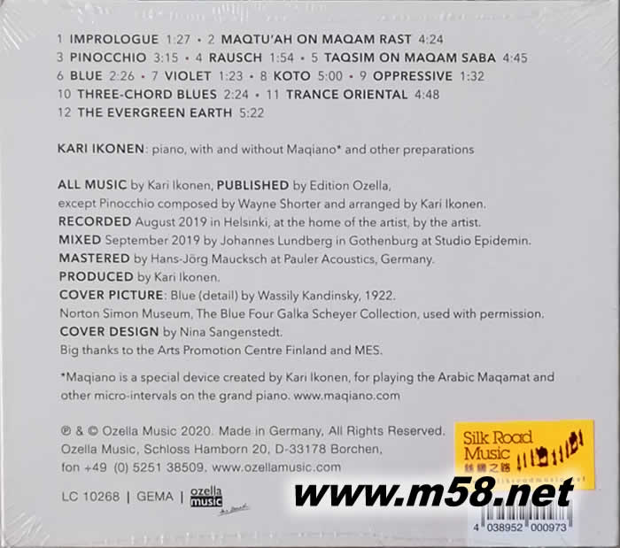 1. Imprologue 2. Maqtu’ah On Maqam Rast 3. Pinocchio 4. Rausch 5. Taqsim On Maqam Saba 6. Blue 7. Violet 8. Koto 9. Oppressive 10. Three-Chord Blues 11. Trance Oriental 12. The Evergreen Earth