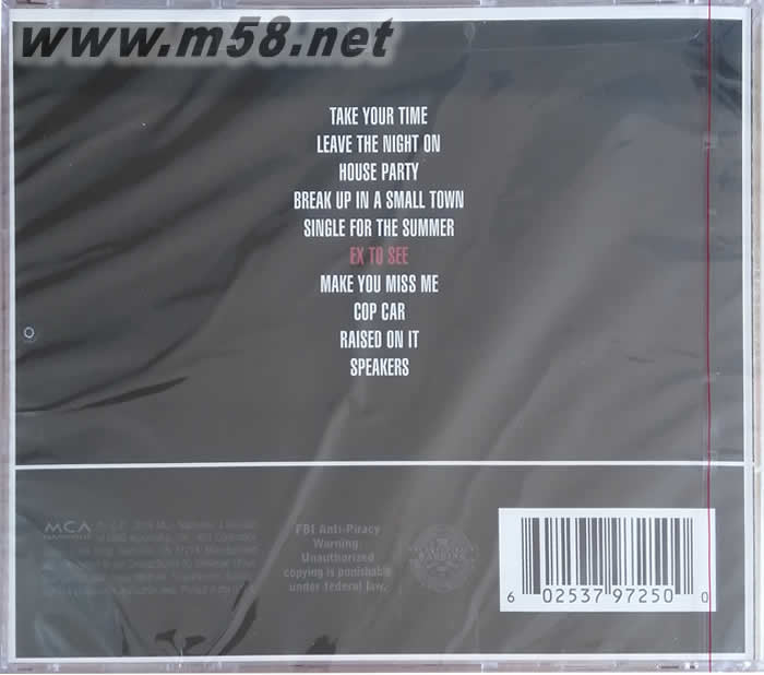 1 Take Your Time 2 Leave the Night on 3 House Party 4 Break Up in a Small Town 5 Single for the Summer 6 Ex to See 7 Make You Miss Me 8 Cop Car 9 Raised on It 10 Speakers