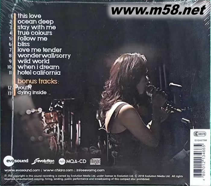 原創民謠發燒女聲卡爾Chlara -- evo sessions MQACD專輯背面圖片