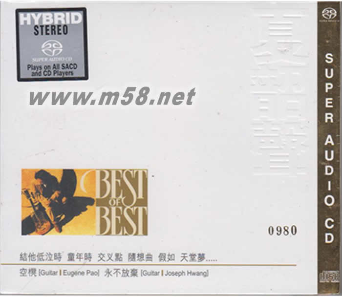 Best of Best (SACD)(m58.net) SACD是Sony與Philips合力研發的音頻碟片規格,是繼CD的發明之后,成功超越CD錄音品質的新產品。音頻CD (CDDA) 采取44.1KHz的取樣頻率,在接近人耳 聽覺極限的高頻訊號中 (接近20KHz) 只能取樣出百份之三十;要用這百份之三十來恢復正確的類比訊號會造成相位誤差。SACD的取樣頻率高達2822.4kHz,是一般CD44.1KHz取樣的64倍,而且SACD頻率范圍更高達100KHz以上;因此使得SACD改善了傳統CD音質給人冷硬的刻板印象,而以更細膩、更多細節、更柔軟的聲音呈現。 SACD的錄音方式是用Direct Stream Digital (DSD,即直流數位技術) 方式錄音,將所有訊號以每秒280萬次直接把類比音樂訊號波形轉變為數位訊號,也就是 『直接位元流數位』,因此取樣非常接近原來的類比訊號。另外,SACD沒有位元轉換程序,降低了數位濾波而產生的失真與雜訊。由于SACD自身的定位以及1bit量化DSD直接資料流程在技術方面的簡潔和優勢,使得大多數的資深音響發燒友經過親耳聆聽后,主觀感覺都認為SACD在音質上勝過音頻CD。