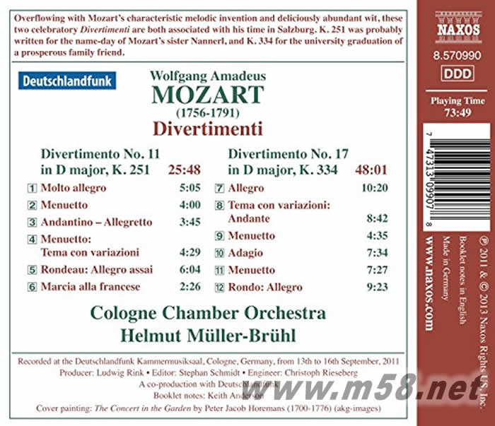 莫札特 DIVERTIMENTI 上榜(m58.net)