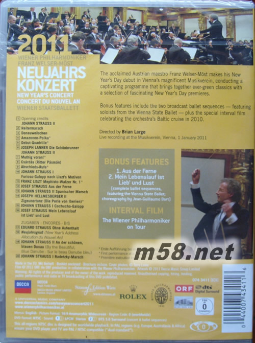 2011維也納新年音樂會2011 Wiener Philharmoniker New Year’s Concert DVD 歐版DVD背面圖片