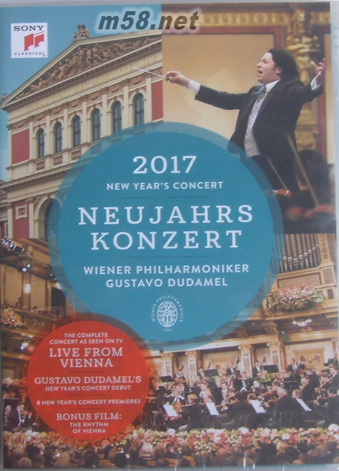 2017維也納新年音樂會New Year's Concert 2017 (DVD)(m58.net) 維也納愛樂Vienna Philharmonic 古斯塔夫.杜達美Gustavo Dudamel (指揮) 全球焦點華麗盛事,第七十六屆維也納新年音樂會影音全記錄隆重上市。 創記錄!交付史上最年輕的年度指揮家─杜達美,首次統御維也納新年音樂會。 九位作曲家二十一首演出曲目完整收錄,包含初登場之作曲家雷哈爾等共八首嶄新樂曲。 堅持歐式傳統精神的維也納愛樂,與迸發拉丁活力的指揮巨星杜達美,攜手開啟維也納新年音樂會新紀元。 在跨年絢爛煙花之后,接續吸引全球目光的焦點,正是維也納愛樂的新年音樂會,除了金色大廳現場三千名幸運觀眾之外,更吸引九十多個國家、超過五千萬人同步收看。這個以演出史特勞斯家族作品聞名的音樂節慶,每年邀請的年度指揮家同樣是眾所矚目之焦點,過去必是德高望重的樂壇大師,但2017年,維也納愛樂請來年僅三十五歲的委內瑞拉指揮家杜達美,創下有史以來最年輕且難以打破的紀錄。 杜達美可謂二十一世紀崛起最快速的指揮巨星,1981年出生於南美洲的委內瑞拉,十歲加入當地著名的音樂教育計畫,十四歲開始學習指揮,五年后被任命為西蒙波利瓦青年樂團的音樂總監,二十三歲贏得馬勒指揮大賽首獎一鳴驚人,現任洛杉磯愛樂音樂總監,預計2017年首次訪臺演出。杜達美第一次與維也納愛樂合作是在2007年的琉森音樂節,當時年僅二十六歲,評價極高,2012年在美泉宮的仲夏夜露天音樂會亦邀請他擔任指揮。因此當宣布2017年維也納新年音樂會由杜達美擔任年度指揮家,這項決定沒人跌破眼鏡,反而讓全球樂迷充滿了高度期待。 果然杜達美為這堅持傳統的音樂會帶來嶄新氣息,打破記錄開出九位作曲家的二十一首作品,包括首次出場的「輕歌劇銀色時代」雷哈爾。而十七首正式曲目中有八首是初次登上維也納新年音樂會,如上半場開場雷哈爾輕歌劇《維也納少女》的進行曲,及下半場開場蘇佩的《黑桃皇后》序曲,還有法國作曲家華德托菲的《溜冰》圓舞曲。而名聲遠播的維也納愛樂之友協會合唱團亦首次登臺,演唱尼可萊著名輕歌劇《溫莎的快樂妻子們》之「月昇」合唱。 拉丁美洲血統的杜達美,以熾熱的能量和旺盛的活力,讓維也納的百年歐式舞曲更加鮮活明快,如小約翰史特勞斯的作品除了《藍色多瑙河》、《一千〇一夜》、《滴答》等經典之外,還首次演出他的《來跳舞》快速波卡、《細紋格》波卡、《圓形大廳》方塊舞、《奢華》圓舞曲。守護輝煌傳統的維也納愛樂,加上充滿煽動力的指揮巨星杜達美,為這場新年音樂會注入前所未有的節慶朝氣,見證了維也納新年音樂會迎接新紀元的到來!