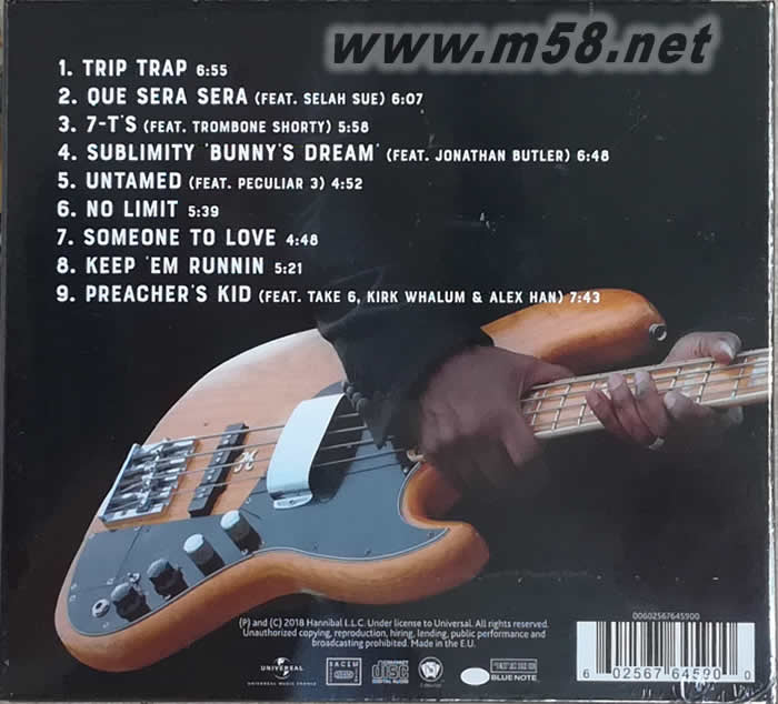 1. Trip Trap 2. Que Sera Sera (feat. Selah Sue) 3. 7-T’s (feat. Trombone Shorty) 4. Sublimity ‘Bunny’s Dream’ (feat. Jonathan Butler) 5. Untamed (feat. Peculiar 3) 6. No Limit 7. Someone To Love 8. Keep ’em Running 9. Preacher’s Kid (feat. Take 6, Kirk Whalum & Alex Han)