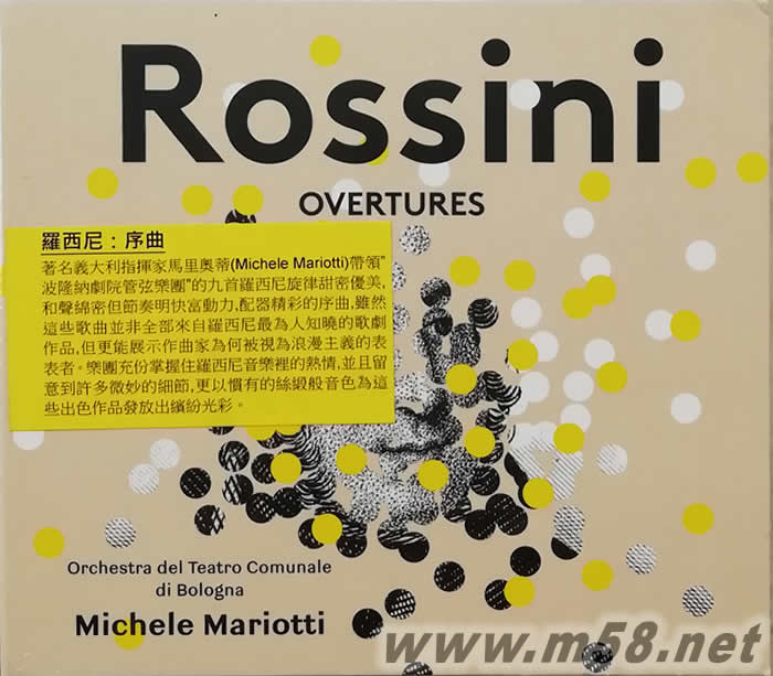 羅西尼:序曲Rossini: Overtures SACD(m58.net) 1. 有”歌劇之父”美譽(yù)之稱的意大利作曲家羅西尼(Gioacchino Rossini)是浪漫主義時(shí)期最權(quán)威的作曲家之一,所創(chuàng)作的歌劇達(dá)40套,善于將情感灌注于樂曲中抒發(fā),其巧妙絕倫的寫作風(fēng)格舉世推崇。序曲是歌劇和舞劇等開幕前演奏的短曲,多稱為"開場曲",主要是綜合地闡述全劇的基調(diào)和發(fā)展,旋律多具戲劇中生,活潑生動(dòng),容易上口。羅西尼為其創(chuàng)作的歌劇而譜寫的序曲多屬絢麗、優(yōu)雅和充滿活力的樂曲,欣賞價(jià)值極高。 2. 此專輯精挑了九首羅西尼旋律甜密優(yōu)美,和聲綿密但節(jié)奏明快富動(dòng)力,配器精彩的序曲,雖然這些歌曲并非全部來自羅西尼最為人知曉的歌劇作品,但更能展示作曲家為何被視為浪漫主義的表表者。 3. 著名意大利指揮家米歇爾‧馬里奧蒂(Michele Mariotti)一向擅長詮釋浪漫的義式音樂特別是歌劇作品,而其指揮自然也為羅西尼的燦爛作品增添優(yōu)雅情韻。由他帶領(lǐng)同是來自羅西尼家鄉(xiāng)的波隆納劇院管弦樂團(tuán)(Orchestra del Teatro Comunale di Bologna),充份掌握住羅西尼音樂里的熱情,并且留意到許多微妙的細(xì)節(jié),更以慣有的絲緞般音色為這些出色作品發(fā)放出繽紛光彩。 4. 羅西尼的音樂富有幽默與輕松的節(jié)奏性,樂團(tuán)出色的演繹加上精湛的錄音效果,給予愛樂者情感上更多共鳴,而音響迷則得到最大的聽覺滿足。