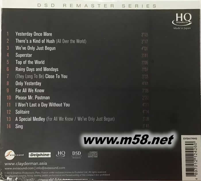 CLAYDERMAN PLAYS CARPENTERS 克萊德曼演奏卡朋特 HQCD專輯背面圖片