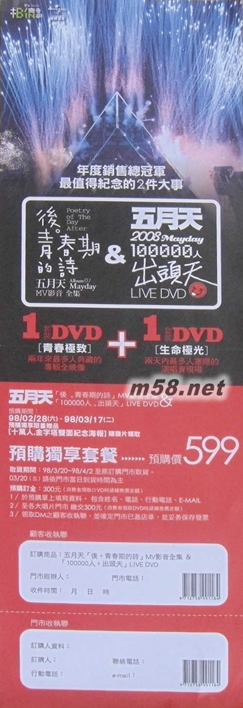 [后青春期的詩」MV影音全集&[100000人 出頭天]LIVE原版預購單(m58.net) 尺寸:33*10CM