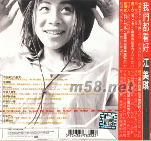 價格為估,以實到貨為準! 我愛王菲(m58.net) 99年最值得買的專輯 我們都看好 江美琪 光禹(名DJ/名作家)尋找一個青春的心谷回應 ,響亮的心聲音 黃子交(名DJ/PLAY音樂雜志掌門人)有實力肯努力 應該給她鼓勵 黎明柔(名DJ/臺背之音音樂臺音樂總監)她的歌唱實力和個性一樣,教人鼓掌叫好 林夕(金曲獎最佳年度作詞人)可以天空 可以深海 可以呼吸 可以飛翔 聽見小美的聲音就可以聞到一種人氣不經人手包裝叫人感動! JIM LEE(金曲獎最佳專輯制作人)小美的聲音令我驚喜,一修水需經過修飾的真實自然聲音,值得一聽再聽,是我自己非常驕傲的作品
