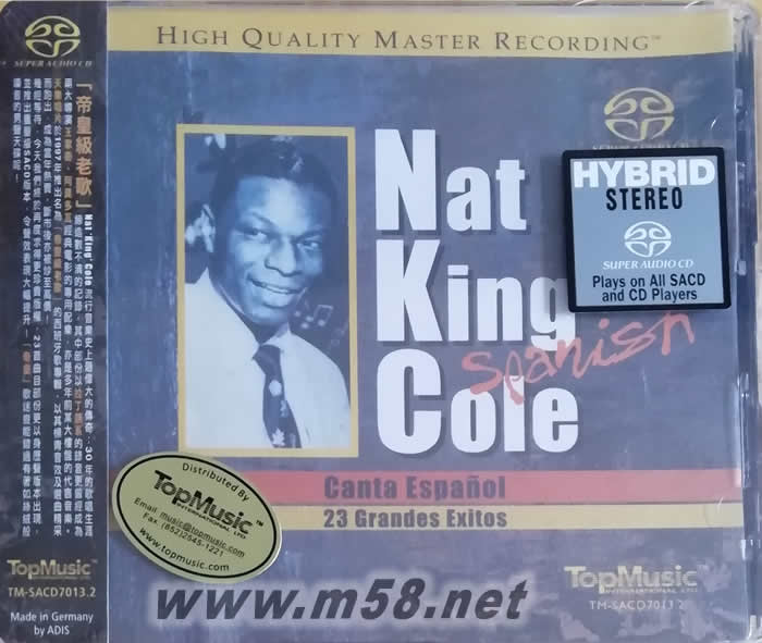 西班牙專輯 混合層立體聲Spanish Hybrid Stereo SACD(m58.net) 京?科爾1919年3月17日生于美國亞拉巴馬州的蒙哥馬利,在芝加哥長大??茽?2歲就在教堂里演奏管風(fēng)琴,同時(shí)還參加唱詩班。他的3個(gè)兄弟埃迪、弗雷德和伊薩克,后來也成了爵士樂音樂家。1936年,科爾離開了由哥哥埃迪?科爾領(lǐng)導(dǎo)的“純粹搖擺者”樂隊(duì),來到洛杉磯,領(lǐng)導(dǎo)了一支專為時(shí)事諷刺劇《曳步前行》配樂的樂隊(duì)。1937年,科爾組建了一支自己的三重奏,為調(diào)節(jié)氣氛,科爾在演奏間隙還不時(shí)唱一首老歌,結(jié)果超出了他的想象,觀眾需要更多的歌曲,于是他開始重視演唱,直到1940年,他們才獲得機(jī)會(huì)為迪卡唱片公司錄音。 40年代,科爾錄制了數(shù)量巨大而且十分精彩的爵士樂唱片,其中包括1944年由萊斯特?楊、伊利諾伊?雅克和第一爵士管弦樂團(tuán)擔(dān)任特色樂師的音樂會(huì)和為國會(huì)大廈唱片公司錄制的為數(shù)眾多的唱片選曲。抖爾在演唱了非常流行的《自然的男孩》和《圣誕之歌》后,又把主要的精力花在了鋼琴演奏上。1949年,科爾演唱的歌曲《蒙娜麗莎》對波普爵士樂產(chǎn)生了巨大的影響,從此一舉成名并進(jìn)入了著名爵士樂歌星的行列。1950—1960年期間,科爾的大部分錄音都是流行民謠??茽栯m然在演奏方面的才華幾乎要被演唱方面的成就所掩蓋,但他仍然具有精湛的演奏技巧。1956—1957年期間,他定期正電視節(jié)目中的表演,仍然保持了較高的水平。1965年2月25日,科爾在加利福尼亞州圣莫妮卡被肺癌奪去了生命,年僅46歲。