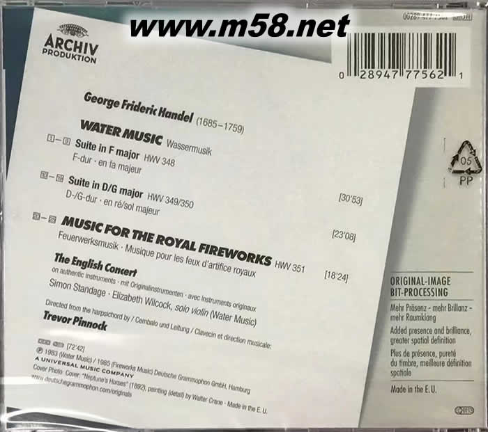 韓德爾 水上音樂組曲、皇家煙火 WATER MUSIC; MUSIC FOR THE ROYAL FIREWORKS 大禾花版(m58.net)