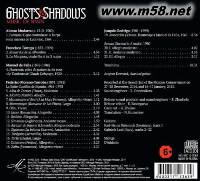 價格為估,以實到貨為準! Ghosts & Shadows - Music of Spain 西班牙吉他之旅(m58.net) 新晉俄羅斯吉他名家2014/2015年兩場莫斯科音樂院音樂會紀實 精彩演繹Alonso Mudarra /Francisco Tárrega /Federico Moreno-Torroba…名家之作