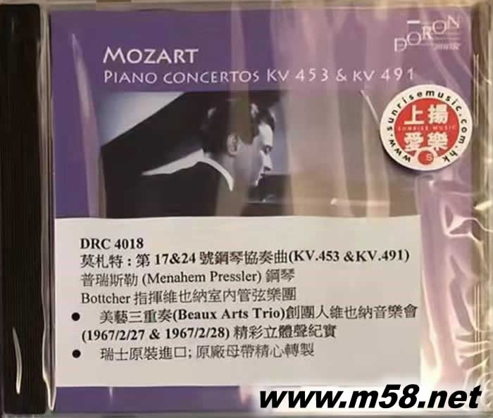 普瑞斯勒 MOZART PIANO CONCERTOS KV453 & KV491(m58.net) 普瑞斯勒 (Menahem Pressler) 鋼琴 Bottcher 指揮 維也納室內(nèi)管弦樂團(tuán) 美藝三重奏(Beaux Arts Trio)創(chuàng)團(tuán)人維也納音樂會(huì) (1967/2/27 & 1967/2/28) 精彩立體聲紀(jì)實(shí) 瑞士原裝進(jìn)口; 原廠母帶精心轉(zhuǎn)製