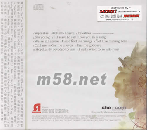 THERE FOOLISH THINGS(m58.net) 繼CLOSE TO YOU LOVE 之后,新世代HIFI 天后SUSAN WONG 再以她獨特磁性的歌聲演繹多首金曲,給這些大家已十分熟悉的歌曲帶來全新的感覺,充滿年青女性活力的SUPERSTAR ,幽幽的AUTUMN LEAVES,十分抒情的CAVATINA (原曲為電影獵鹿者主題曲),SWING得痛痛快快的TOO YOUNG ,好甜的I'II HAVE TO SAY I LOVE YOU IN A SONG ,極度迷人的THESE FOOLISH THINGS,還有WE'RE ALL ALONG ,KISS ME GOODBYE ,HOPELESSLY DEVOTED TO YOU 這些經典.錄音是百分最靚聲的臨聽天碟級,栩栩如生的人聲與樂器聲,精確的定位和音場,洋溢音樂美感的溫暖音色,是罕有音樂與音效同樣超級的一張女聲天碟.