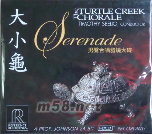 大小龜 男 聲合唱發(fā)燒大碟 HDCD(m58.net) 著名男聲合唱團(tuán)——龜溪合唱團(tuán)(The Turtle Creek Chorale)的發(fā)燒大碟《小夜曲 》(Serenade),是RR公司2007年發(fā)行的專輯。此碟無(wú)比寬闊的音場(chǎng)和精確的人聲定位,帶給你頂級(jí)的人聲合唱享受。 《小夜曲 》(Serenade)由RR錄音大師基思?約翰遜博士錄制于達(dá)拉斯的梅爾森交響音樂(lè)廳,不論從音樂(lè)方面,還是音響效果方面,注定是RR公司最受矚目的唱片之一。