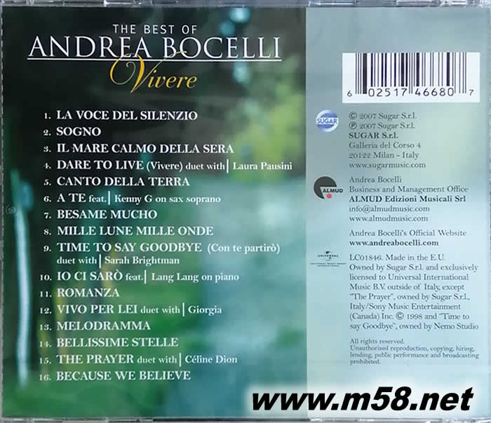 THE BEST OF ANDREA BOCELLI VIVERE 生命奇跡-世紀(jì)精選加新歌(m58.net)