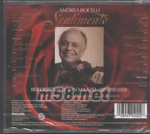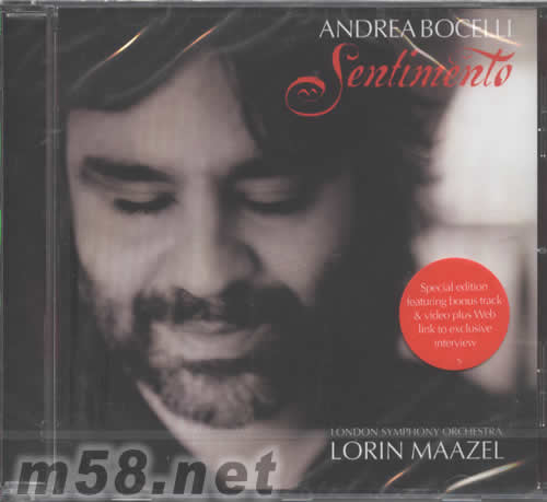 Sentimento(m58.net) 小提琴及指揮:LORIN MAAZEL 記得Celine Dion曾說過,若上帝也有歌聲的話,那聲音就是盲人歌手Andrea Bocelli (安德烈波伽利),從他與Sarah Brightman(莎拉布萊曼)合唱的《 Time To Say Goodbye》全球樂迷似乎找到一種映照心靈的歌聲,一道照亮心靈的曙光,一份對生命的熱情禮贊。