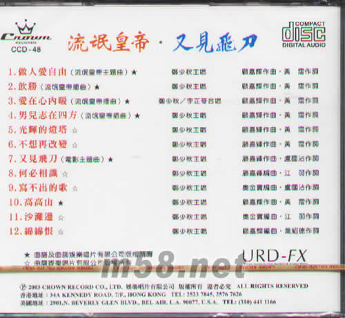 01. 做人愛自由(流氓皇帝主題曲) 02. 飲勝(流氓皇帝插曲) 03. 愛在心內暖(流氓皇帝插曲) 鄭少秋/李芷苓合唱 04. 男兒志在四方(流氓皇帝插曲) 05. 光輝的燈塔 06. 不想再改變 07. 又見飛刀(電影主題曲) 08. 何必相識 09. 寫不出的歌 10. 高高山 11. 沙灘邊 12. 綿綿恨