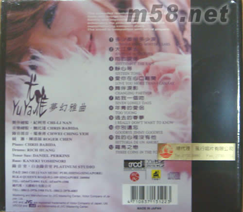 夢(mèng)幻雅曲XRCD(m58.net) 人聲栩栩如生 定位奇準(zhǔn)無比 爵士風(fēng)味編曲 旋律優(yōu)美感人 永遠(yuǎn)不退色的西洋老歌!在世界的每個(gè)角落里,都有她的音樂旋律,永在人們的記憶里.尤雅與世界級(jí)的音樂好手,以即與演唱,演奏的爵士樂風(fēng) ,唱出一種獨(dú)特的風(fēng)格韻味.