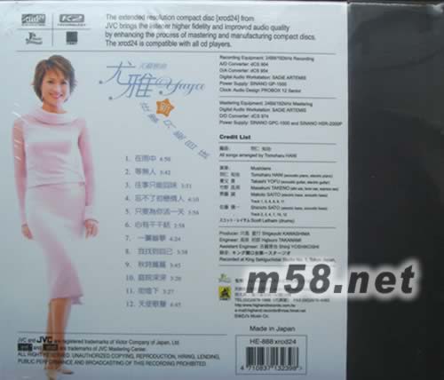 新往事只能回味XRCD(m58.net) 內(nèi)容簡(jiǎn)介 日本皇牌錄音師「高浪初郎」破例復(fù)出 格林美最佳制作「川島重行」全新錄制 女聲細(xì)致甜美 樂(lè)器層次分明 定位精確無(wú)比 錄音無(wú)懈可擊