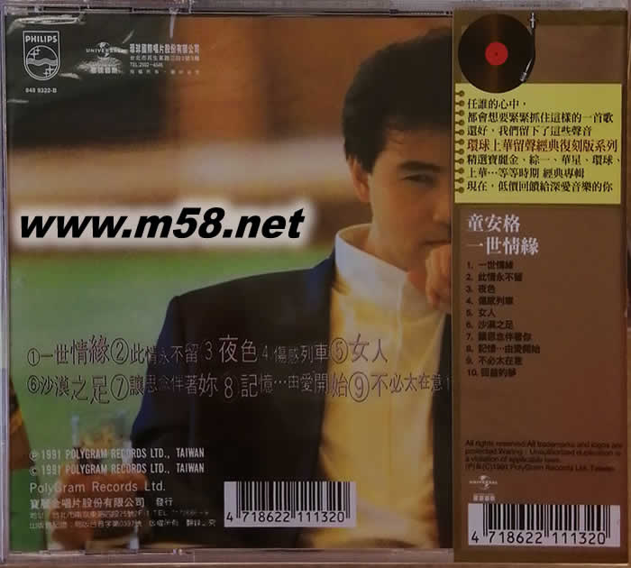 一世情緣(留聲經(jīng)典復(fù)刻系列)(m58.net) 任誰的心中, 都會想要緊緊抓住這樣的一首歌, 還好,我們留下了這些聲音。 環(huán)球上華留聲經(jīng)典復(fù)刻版系列 精選寶麗金、綜一、華星、環(huán)球、上華...等等時(shí)期 經(jīng)典專輯。 現(xiàn)在,低價(jià)回饋給深愛音樂的你。