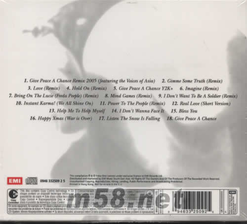 1. Give Peace A Chance (Remix 2005) (Featuring The Voices Of Asia) 2. Gimme Some Truth(REMIX) 3. Love(REMIX 4. Hold On(REMIX) 5. Give Peace A Chance Y2k+ 6. Imagine(REMIX) 7. Bring On The Lucie (Freeda People)(REMIX) 8. Mind Games(REMIX) 9. I Don't Wanna Be A Soldier(REMIX) 10. Instant Karma! (We All Shine On) 11. Power To The People 12. Real Love (Short Version) (Speech Removed) 13. Help Me To Help Myself (Speech Removed) 14. I Don't Wanna Face It 15. Bless You 16. Happy Xmas (War Is Over) 17. Listen The Snow Is Falling 18. Give Peace A Chance