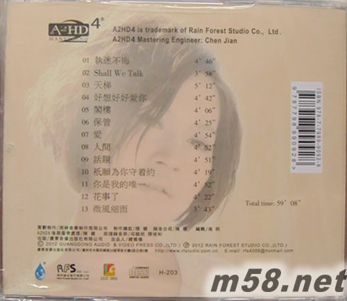 01.執迷不悔 02.Shall We Talk 03.天梯 04.好想好好愛你 05.閣樓 06.保管 07.愛 08.人間 09.話題 10.只愿為你守著約 11.你是我的唯一 12.花事了 13.微風細雨