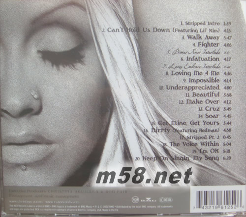 1.Stripped Intro 2.Can't Hold Us Down (Featuring Lil Kim) 3.Walk Away 4.Fighter 5.Primer Fmor Intercude 6.Infatuation 7. 8.Loving Me me 9.Impossible 10.Underappreciated 11.Beaufiful 12.Make Over 13.Cruz 14.Soar 15.Get Mine Get Youes 16.Dirrty (Featuring Redman) 17.Stripped pt 18.The Volce Within 19.I'm OK 20.Keep ON Sinqin My Sonq