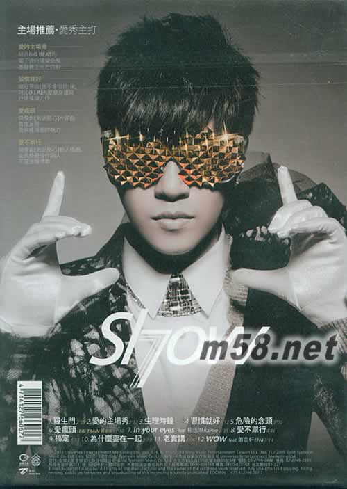 羅生門 正式版 雙封面+炫目靜電貼+寫真歌詞本 臺灣版(m58.net) 正式版加贈 <首創 潮男變臉雙封面 炫目靜電貼> 全新造型 專屬歌詞本照片 和預購版完全不同! 世界用7天創造 舞王用7年打造 羅志祥SHOW巔峰造極第7張音樂力作 [羅生門] 打開愛情的 羅生門 解開真實與謊言的密碼 打開音樂的 羅生門 再創亞洲舞王全新神話 潮男領SHOW自我突破 2010裝飾系潮男主場秀 臺灣人的創意 好萊塢的班底 [愛的主場秀]MV開創亞洲舞王新神話 700萬鉅資遠征紐約歌劇院 羅志祥化身劇場守護者大秀墨鏡舞 第一道愛的羅生門 = 衝動 愛的主場秀 愛情剛開始的相遇 棋逢敵手 斗智斗勇 誰才是這場游戲的主導者? 結合BIG BEAT的電子流行搖滾曲風 墨鏡舞王光芒四射 為什么要在一起 當感情過了衝動期 有時候會讓人忘了當初心動的原因… 首度詮釋爵士JAZZ靈魂樂曲風,展現成熟紳士魅力,讓人驚艷 第二道愛的羅生門 = 偽裝 習慣就好 回憶就像一道關不上的門 寂寞要花多久時間才能習慣? 阿沁(F.I.R) 繼冠軍點播曲[我不會唱歌]后,再次量身譜寫SLOW ROCK抒情搖滾年度K 歌 第三道愛的羅生門 = 揮霍 愛瘋頭 當愛上一個人,為愛瘋了頭,赴湯蹈火,海派獻出所有也不算什么! 首次嘗試輕快的英倫搖滾節奏. 浪漫偶像劇[海派甜心]片頭曲. 搞定 為了愛的證明 搞定所有要求 五體投地的揮霍 只為對方開心 帶有80年代DISCO和HOUSE 節奏的輕鬆舞曲. 生理時鐘 熱戀時揮霍相愛的每一分鐘 ,二個人像生理時鐘24小時同步著 融合POP R&B 節奏的甜蜜小品 第四道愛的羅生門 = 等待 愛不單行 愛不是單數,相信自己能擁有幸福,對的人也在未來等待與你相遇 由馬毓芬製作,金馬獎最佳作詞人嚴云農全新溫暖情歌,浪漫偶像劇[海派甜心]插曲 第五道愛的羅生門 = 受傷 羅生門 是否真愛的學分 非要摔痛了才能修得成?那千奇百怪艱深的學問 就像羅生門 R&B節奏藍調重拍節奏舞曲 暢銷作詞人陳鎮川最新力作 第六道愛的羅生門 = 報復 危險的念頭 當一段戀情結束,最危險的念頭 是心存報復? 還是念念不忘? 情歌圣手姚若龍填詞,羅志祥吶喊男人不為人知的心酸,成熟唱腔感人肺腑 第七道愛的羅生門 = 勇敢 老實講 感情世界里 想愛就要及時說 當錯過對的時間點 有些感覺就再也回不去了亞洲知名製作人李偉菘製作,鄭淑妃填詞.唱出愛情淡淡的哀愁與事過境遷的感慨